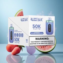 Mansikka-Vesimeloni-Kuplakumi Razz Bar 50K Puffs Ladattava 650 mAh Akku